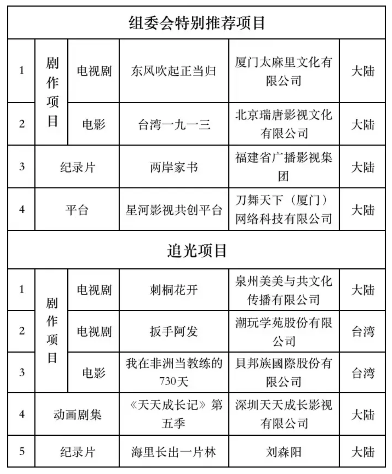 此外,《刺桐花开》《我在非洲当教练的730天》《天天成长记》(第五季)《海里长出一片林》的主创代表也在现场分享了创作初衷,从他们的讲述中,两岸影视业蓬勃向上的活力清晰可见。