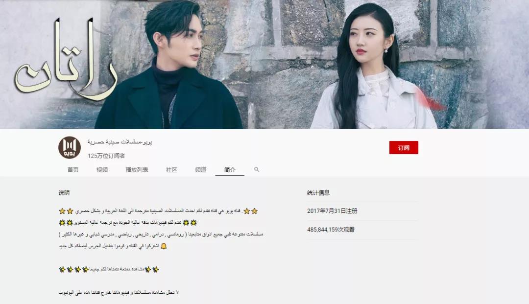 截至2021年3月下旬,世纪优优运营的YouTube阿拉伯语频道订阅用户达到124万人,总观看次数超过4.8亿次。腾讯视频阿拉伯语频道订阅用户达79.8万,累计发布视频1145个。华策影视运营的YouTube阿拉伯语频道订阅用户达50.7万,在其运营的小语种频道中位居第一。