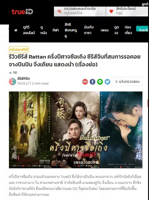 在泰国MONOMAX平台,《司藤》取得热门剧排名榜第一的成绩,True ID 官方Facebook予以推荐,引发日本、越南、中国台湾等当地多家媒体报道。