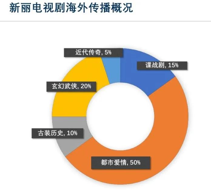 新丽传媒做海外业务已有多年,经历了中国电视剧、纪录片、动画片走出国门的初创阶段,见证了中国影视作品在更广泛的国家和地区得到传播,也正在努力为将中国内容的国际传播推向新高度而不懈奋斗。新丽不是平台,不是发行商,而是一个标准的本土制作公司。作为这样一个公司,提升电视剧国际传播力的方法主要体现在以下几个方面:一是以新丽为数据基础,看中国电视剧海外传播现状;二是针对不同类型电视剧制定不同发行策略;三是有效拓展国际传播的方式和渠道;四是国际合作、合拍的实践。