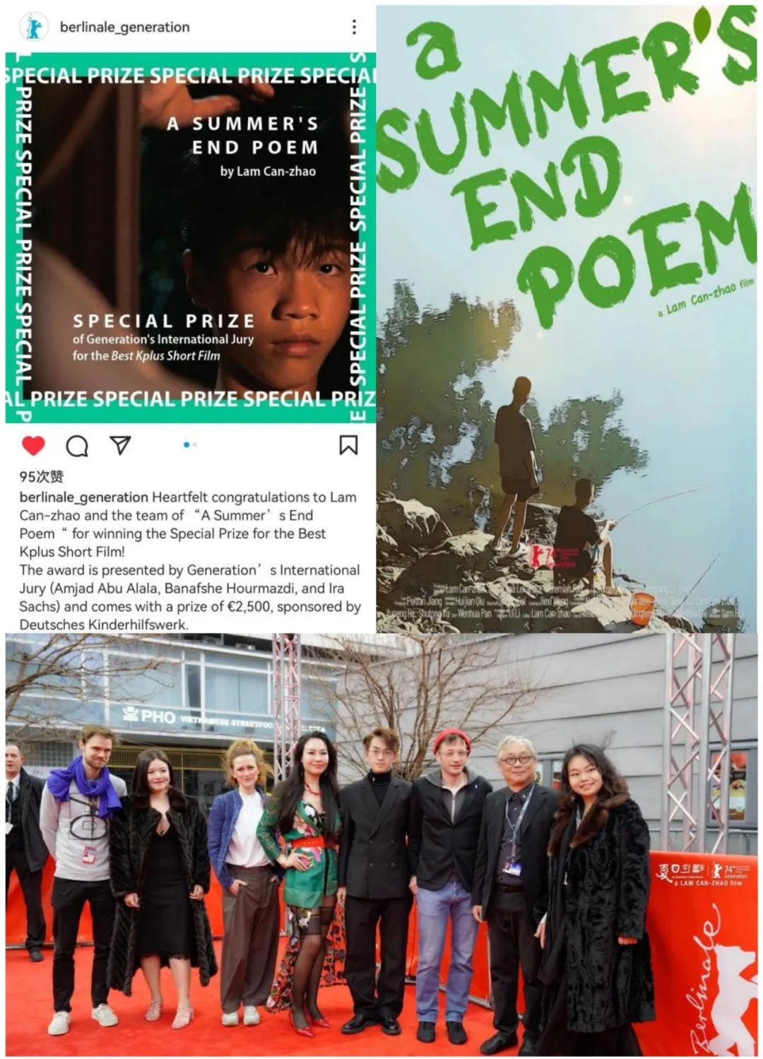 在刚刚落幕的第74届柏林国际电影节上,中国传媒大学戏剧影视学院2023级戏剧与影视学专业研究生徐舒彤同学担任联合编剧的影片《夏日句点》,荣获第74届柏林国际电影节新生代儿童单元·国际评审团最佳短片特别奖。