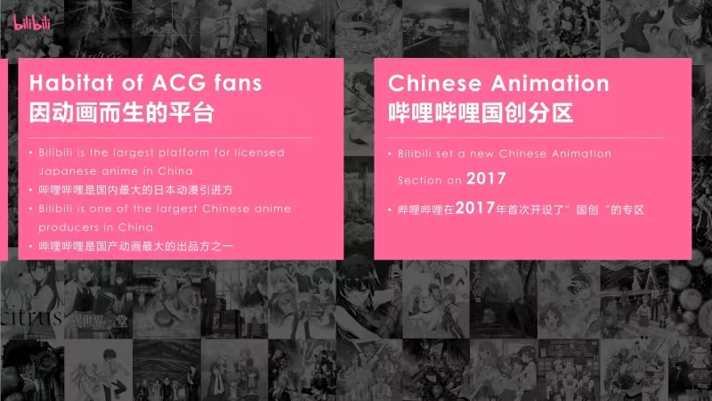 在以优质内容服务粉丝的同时,哔哩哔哩也秉持着创造并服务全球(Made by bilibili,made for global)的理念,以创造具有世界影响力的内容为己任。愿景是让包括动画在内的中国原创受到世界的欢迎。