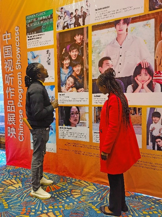 肯尼亚嘉宾驻足观看中国视听作品展示板