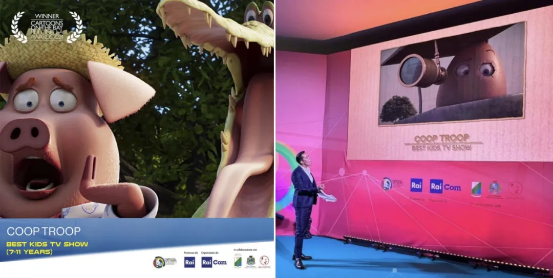 在本届意大利海湾国际卡通节上,腾讯视频联合出品的自制动画片《靠谱小队》(Coop Troop)在最终入围的一众优秀作品中脱颖而出,获得7-11岁最佳儿童电视动画片普钦内拉大奖(Pulcinella Award)。其获奖颁奖词中提到,角色非常有趣,动画效果出色,《靠谱小队》以一种迷人的方式赋予了故事生命。