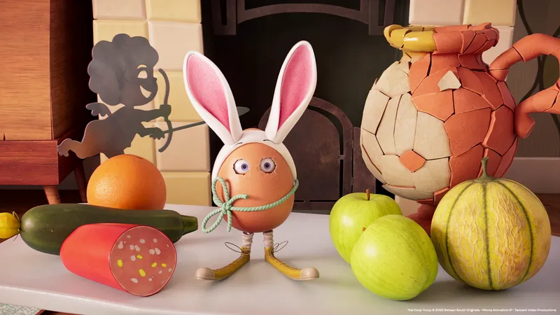 《靠谱小队》动画剧集讲述了四个农场英雄和一枚鸡蛋组成的靠谱小队,随时准备帮助陷入困境的动物们的欢乐喜剧冒险故事。联合出品方包括腾讯视频、英国Sixteen South、法国电视台以及承制了《宝贝老板》《艾琳娜公主》及《忍者神龟:变种大乱斗》等电影的法国知名动画制作公司Mikros Animation。