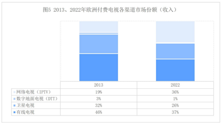 2022年,欧洲付费电视(Pay TV)收入比2021年增长了3.6%,达到390亿欧元。但考虑到通货膨胀,欧洲付费电视收入延续了过去5年持续下降的趋势。