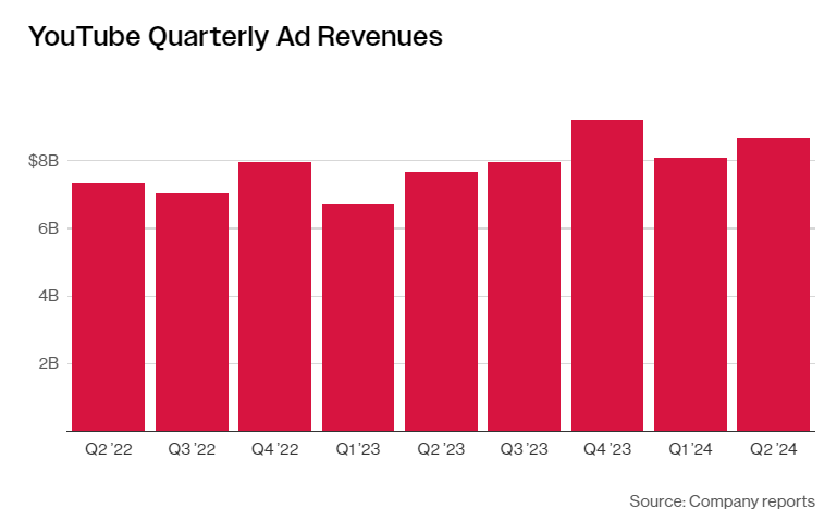 虽然优兔确实提供高级会员订阅产品(更不用说其虚拟传统有线电视),但其最主要的收入来源一直是广告,这与以订阅为动力的流媒体大战的参战者形成了鲜明对比。