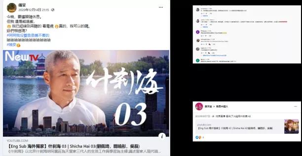 为提高该剧在海外的传播力影响力,在开播之前,未来电视就通过自制手绘特色海报在国内外众多平台进行预热宣传。播出期间,未来电视通过Facebook等社交平台积极宣推,提高媒体热度和关注度,保持用户黏性。2020年7月10日,《什刹海》在央视开播,并同步上线未来电视YouTube官方频道热播剧场。未来电视将其译制为英语、越南语、印尼语、阿拉伯语等多语种版本,供不同国家和地区的网友观看。截至目前,《什刹海》在Youtube官方频道共收获613.9万次观看。下一步,《什刹海》将继续登陆美国、加拿大、日本、越南、柬埔寨等国家电视频道,及 ITALKBB、ODK等北美新媒体平台,触达更多海外观众。